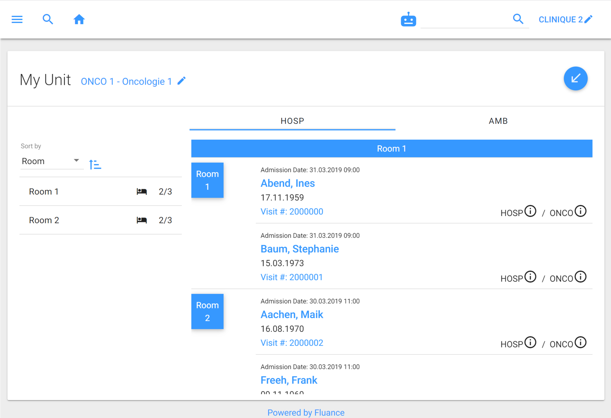 Overview "My cockpit": My Unit, My Service, My Patients, Patient Appointments, My Appointments, My latest search